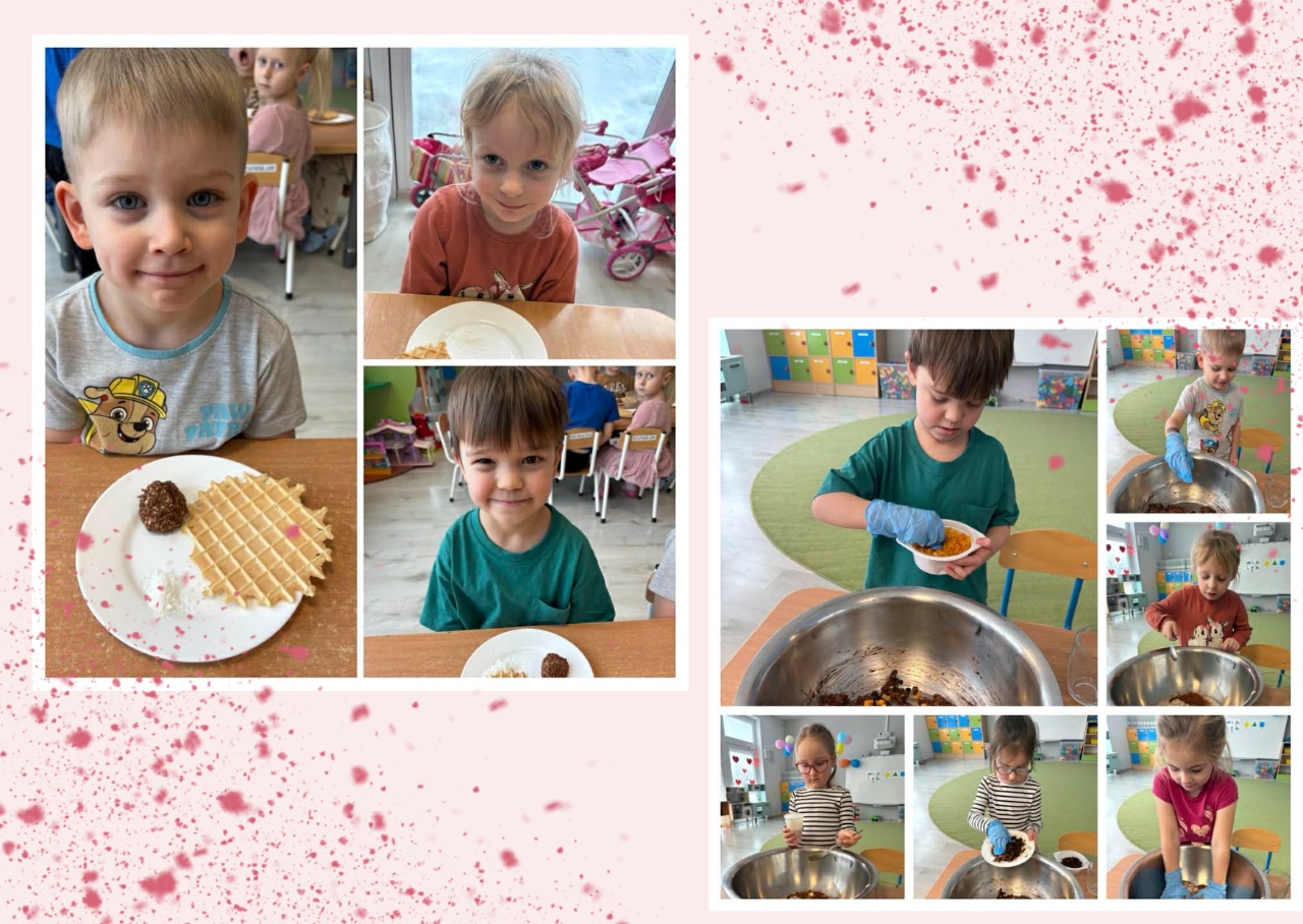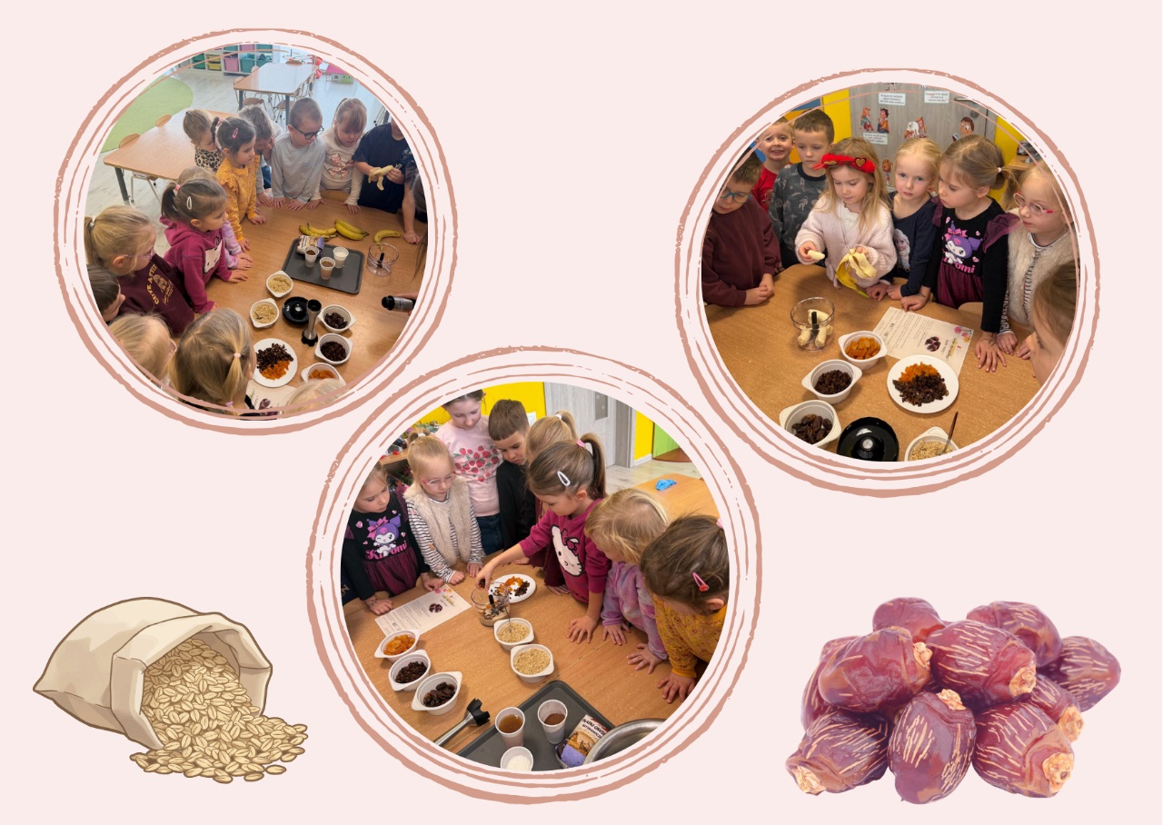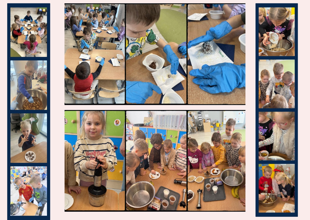 Celem zajęć „Kuchcikowo” było zachęcenie dzieci do poznawania zdrowych przekąsek oraz rozwijanie samodzielności podczas przygotowywania prostych potraw. Podczas spotkania uczestnicy własnoręcznie przygotowywali kulki mocy z naturalnych składników. Dzieci z dużym zaangażowaniem mieszały produkty, formowały kulki i poznawały zasady zdrowego odżywiania. Zajęcia były okazją do wspólnej zabawy, rozwijania umiejętności kulinarnych oraz integracji w grupie.