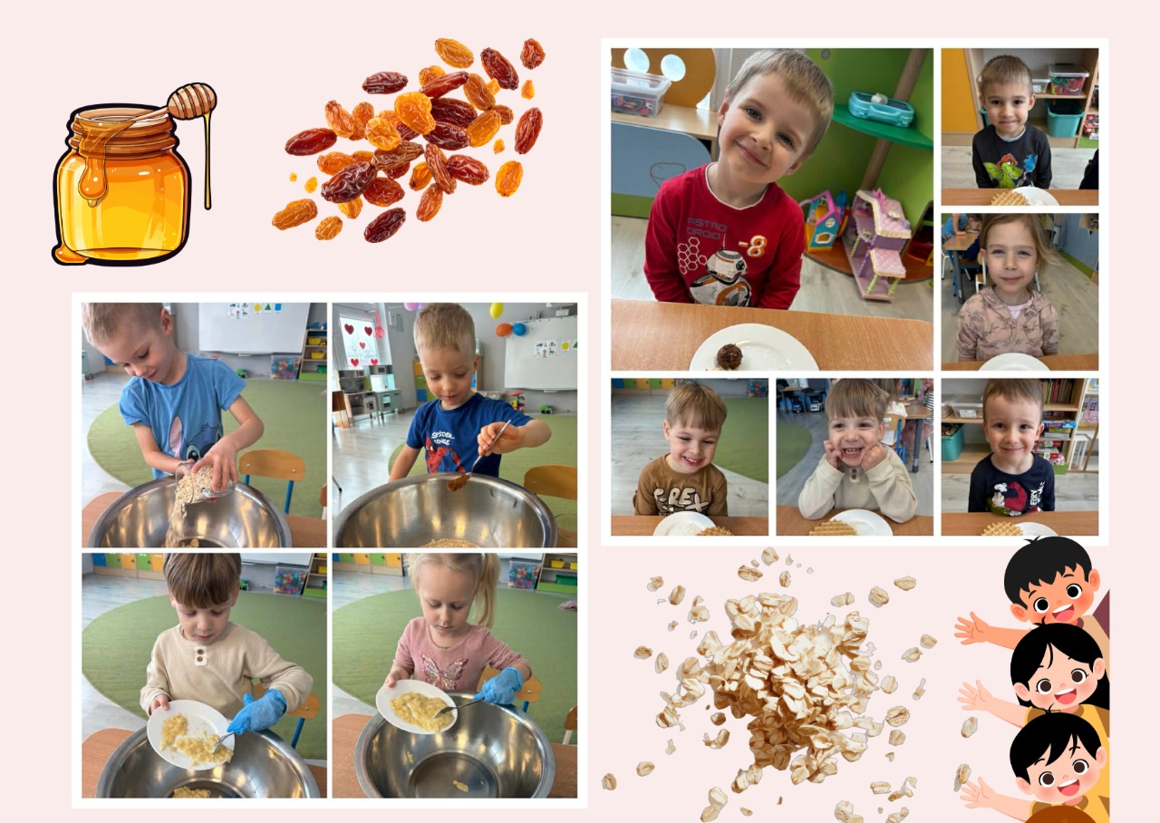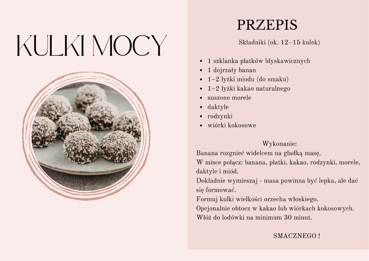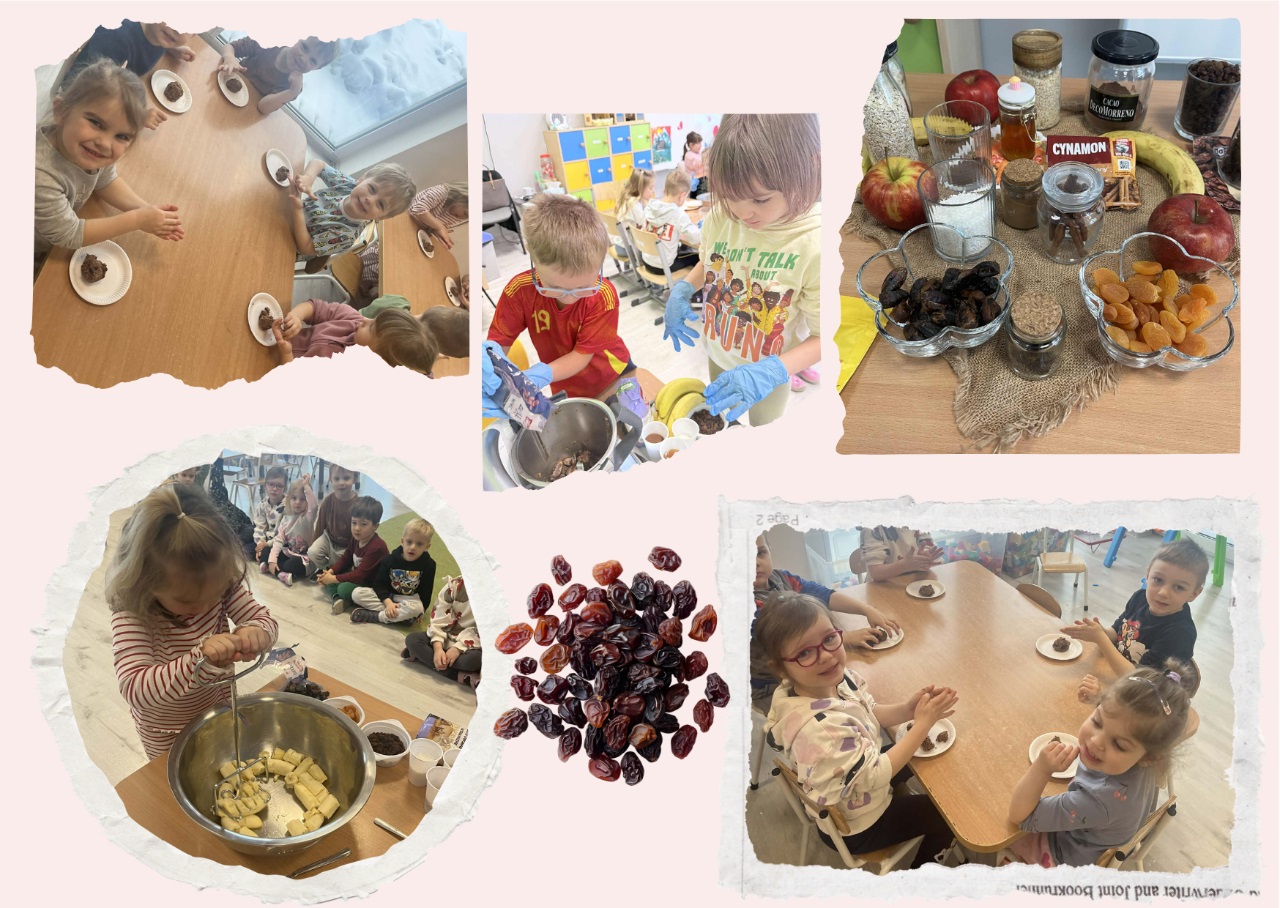 Celem zajęć „Kuchcikowo” było zachęcenie dzieci do poznawania zdrowych przekąsek oraz rozwijanie samodzielności podczas przygotowywania prostych potraw. Podczas spotkania uczestnicy własnoręcznie przygotowywali kulki mocy z naturalnych składników. Dzieci z dużym zaangażowaniem mieszały produkty, formowały kulki i poznawały zasady zdrowego odżywiania. Zajęcia były okazją do wspólnej zabawy, rozwijania umiejętności kulinarnych oraz integracji w grupie.